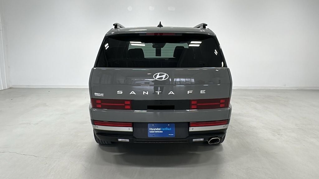 This 2026 Hyundai Santa Fe is equipped with Option Group 01, Hyundai Certified Used Vehicles Certified, Black Leather, Navigation System, 12 Speakers, 3rd row seats: bench, 4-Wheel Disc Brakes, ABS brakes, Air Conditioning, All Season Fitted Liners, Alloy wheels, AM/FM radio: SiriusXM, Apple CarPlay & Android Auto, Auto High-beam Headlights, Auto-dimming Rear-View mirror, Automatic temperature control, Brake assist, Bumpers: body-color, Cargo Blocks, Cargo Cover/Screen, Cargo Net, Cargo Organizer, Cargo Tray, Carpeted Floor Mats, Delay-off headlights, Driver door bin, Driver vanity mirror, Dual front impact airbags, Dual front side impact airbags, Electronic Stability Control, Emergency communication system, Exterior Parking Camera Rear, First Aid Kit, Four wheel independent suspension, Front anti-roll bar, Front Bucket Seats, Front Center Armrest, Front dual zone A/C, Front reading lights, Fully automatic headlights, Garage door transmitter: HomeLink, Heated and Ventilated Front Bucket Seats, Heated door mirrors, Heated front seats, Heated rear seats, Heated steering wheel, Illuminated entry, Knee airbag, Leather Seat Trim, Leather steering wheel, Low tire pressure warning, Memory seat, Occupant sensing airbag, Outside temperature display, Overhead airbag, Overhead console, Panic alarm, Passenger door bin, Passenger vanity mirror, Power door mirrors, Power driver seat, Power Liftgate, Power moonroof, Power passenger seat, Power steering, Power windows, Radio: AM/FM/HD Bose Premium Audio System, Rain sensing wipers, Rear anti-roll bar, Rear side impact airbag, Rear window defroster, Rear window wiper, Remote keyless entry, Security system, Speed control, Speed-sensing steering, Split folding rear seat, Spoiler, Steering wheel mounted audio controls, Tachometer, Telescoping steering wheel, Tilt steering wheel, Traction control, Trip computer, Turn signal indicator mirrors, Variably intermittent wipers, Ventilated front seats, and Wheels: 20 x 8.5J Alloy.